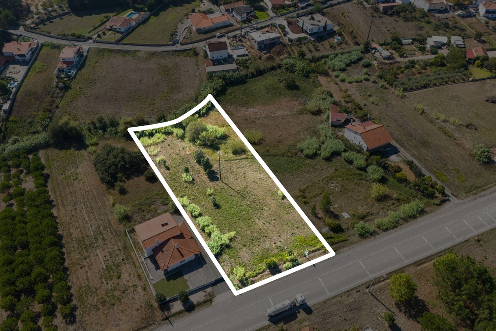 Este terreno para construção pode ser vendido isoladamente por 235.000 €, ou em conjunto com o terreno adjacente, totalizando uma área total de 12.400 metros quadrados, pelo valor de 365.000 €. Situa-se numa encosta virada a sul, com excelente exposição solar e declive moderado.